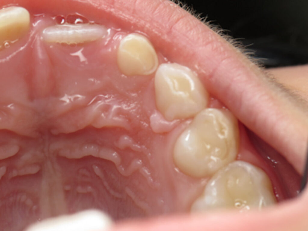 A 5-year-old girl presented to the general dentist because of a “bump” on her upper right maxilla (lingual of tooth #H).